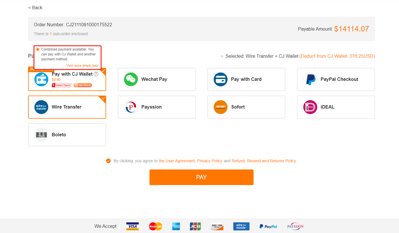 The payment methods below are what CJ would accept currently. Now, we'll give you an introduction to them.