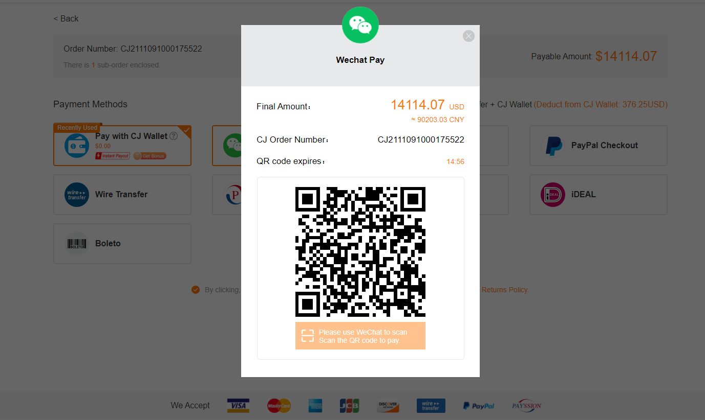 Note: The QR code expires after 15 minutes, so please pay on time.