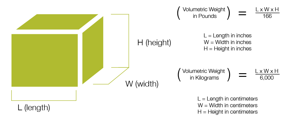 Note: Volumetric weight (Pounds) is generated by the formula length* width* height (inches) / 166.
