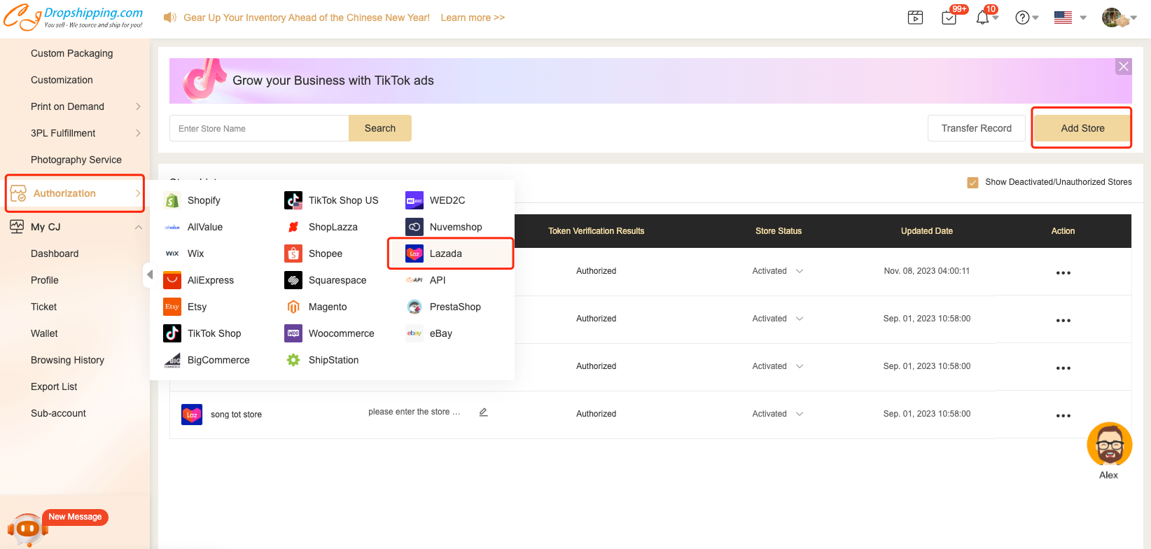 After rounds of updates, Lazada stores can be connected with CJ with ease now.