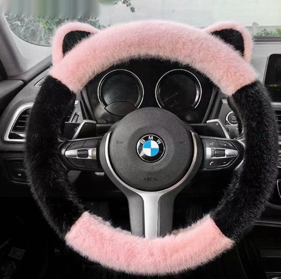 A soft, fuzzy cover that wraps around your car’s steering wheel – sometimes in cute animal shapes (hello, kitty-themed covers!) or just solid plush colors. Picture driving to work on a chilly morning with your hands on a fuzzy pastel pink wheel cover – that’s the vibe here. These covers give your car interior a cozy makeover and a warm surface in winter. Car-lovers and trend-followers have been plastering videos of kitty, unicorn, or cow-patterned steering wheel covers on TikTok and Instagram.